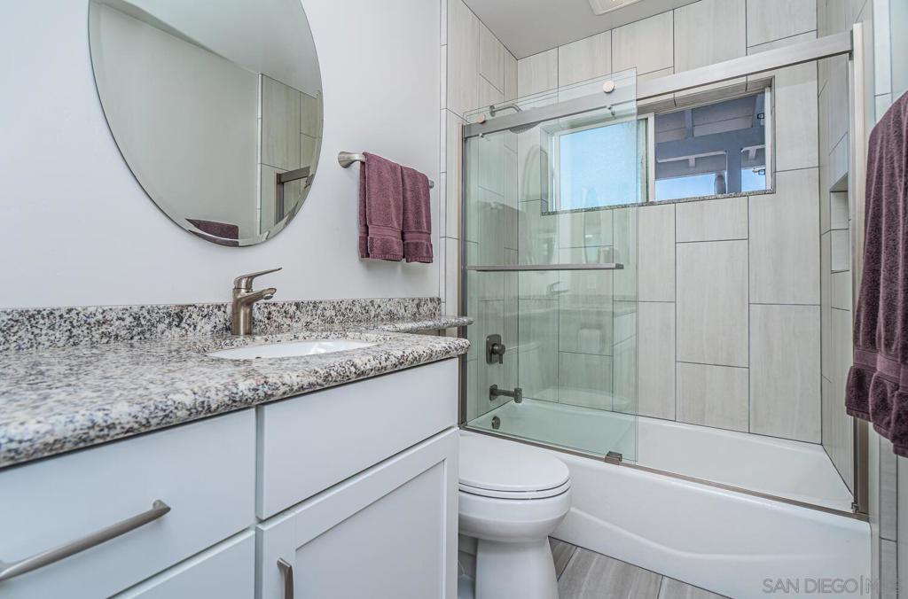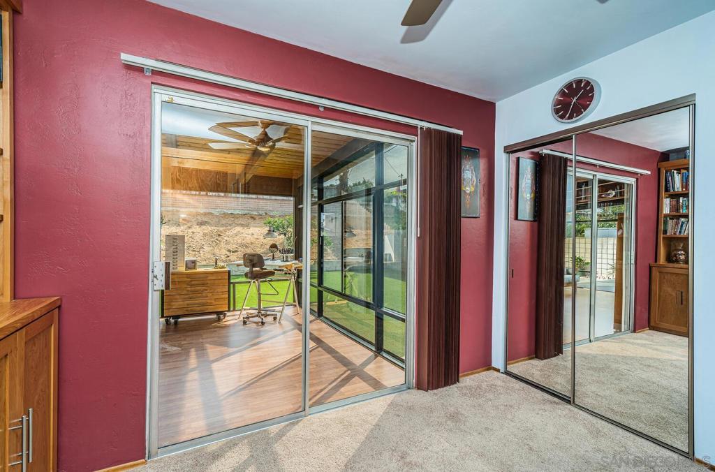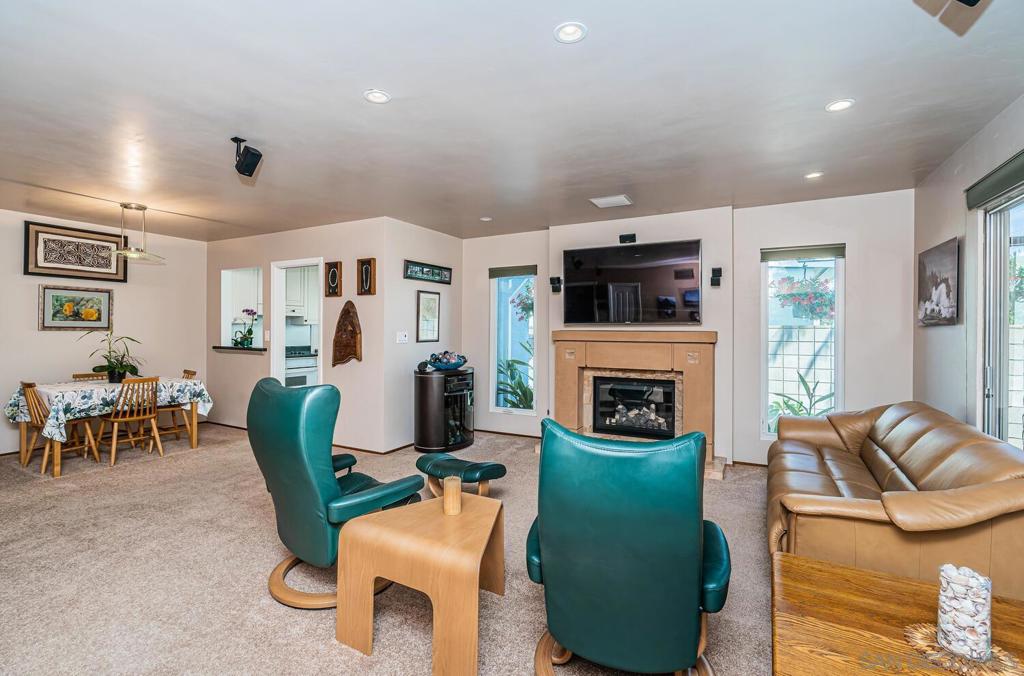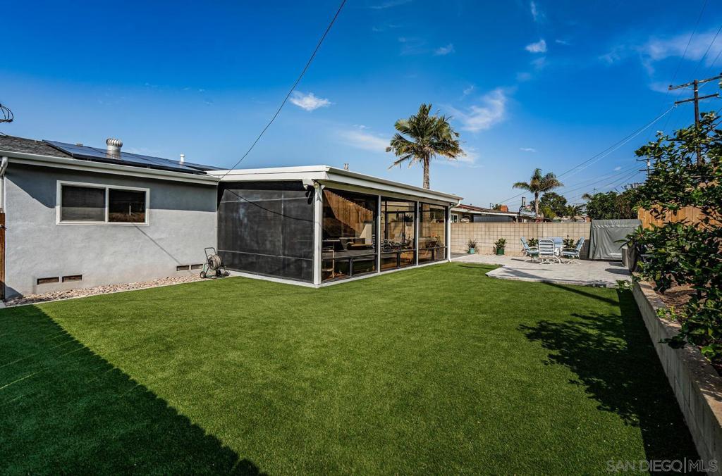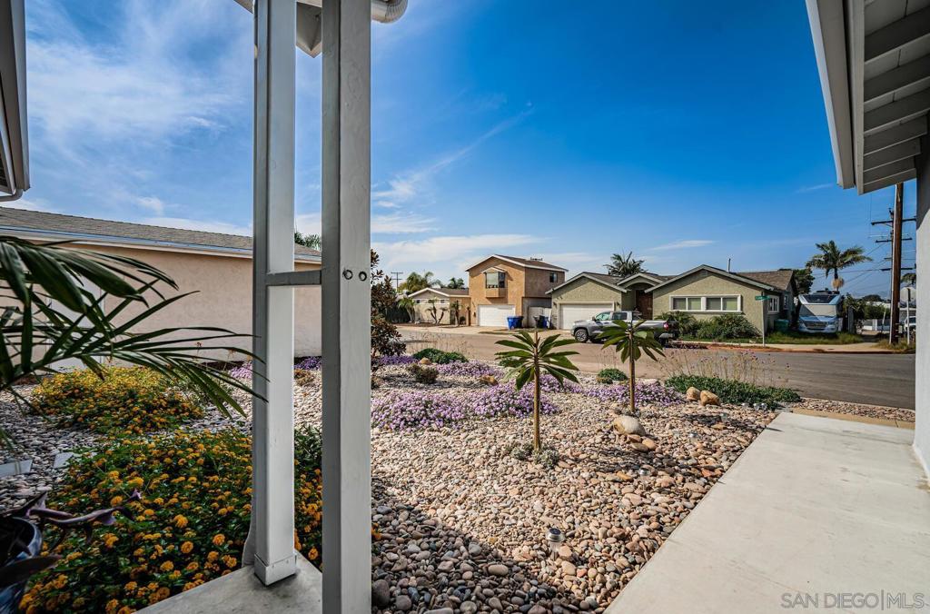 WELCOME HOME! This BEAUTIFUL, move in ready home has been thoughtfully upgraded in all the right places starting with the newly inspired, low maintenance front yard. Entering this home you're greeted with tons of natural light and the open floor plan. The spacious combination living/dining room area enjoys a marble and concrete, gas fireplace surrounded by large windows on both sides. Off to the left, the upgraded kitchen has vinyl plank flooring, deep sinks with Kohler faucets, Corian countertops, custom lighting and countertop insets for mixers and blenders. See supplement for more. WELCOME HOME! This BEAUTIFUL, move in ready home has been thoughtfully upgraded in all the right places starting with the newly inspired, low maintenance front yard. Entering this home you're greeted with tons of natural light and the open floor plan. The spacious combination living/dining room area enjoys a marble and concrete, gas fireplace surrounded by large windows on both sides. Off to the left, the upgraded kitchen has vinyl plank flooring, deep sinks with Kohler faucets, Corian countertops, custom lighting and countertop insets for mixers and blenders. Heading down the hallway, you'll find a bedroom on the left that includes a murphy bed, mirrored closet doors and a sliding door to the enclosed patio. The second bedroom has a ceiling fan, mirrored closet doors and a built-in wall safe. The primary bedroom has a ceiling fan and fully remodeled bathroom with ceramic tile flooring and shower enclosure. Accessed from the living room and one of the bedrooms, is a fabulous 25x14 enclosed sunroom. This 350square foot room includes new vinyl flooring, vaulted wood beam ceilings, a ceiling fan, new lighting and tinted windows. This finished room has endless possibilities for the new owners! Outside you will find the newly custom designed patio including a relaxing babbling brook feature along with artificial turf. This home also has solar installed under an assuable contract. The seller's monthly electric bill is approx $80.00 per month. Other upgrades and features include newer doors and dual pane windows throughout (excluding the sunroom), a custom front screen door with a retractable panel, a whole house fan, new insulation throughout the house, keyless entry, newer exterior stucco, new side gate and walkway and so much more. The prime location is close to shopping, post office, schools, restaurants, churches, freeways, movies theaters, world famous beaches, trolley stations and Mt. Soledad to name a few.