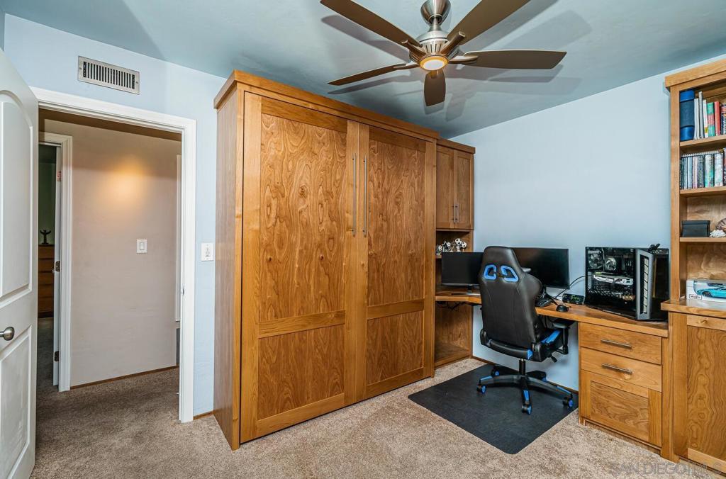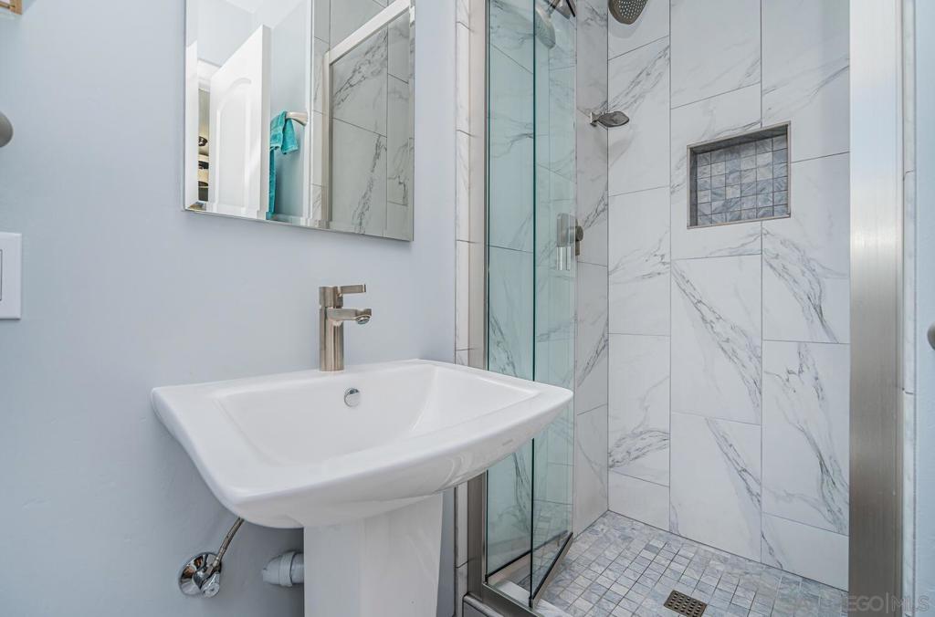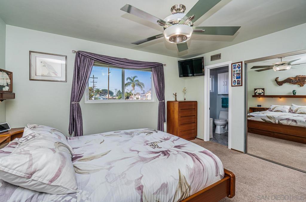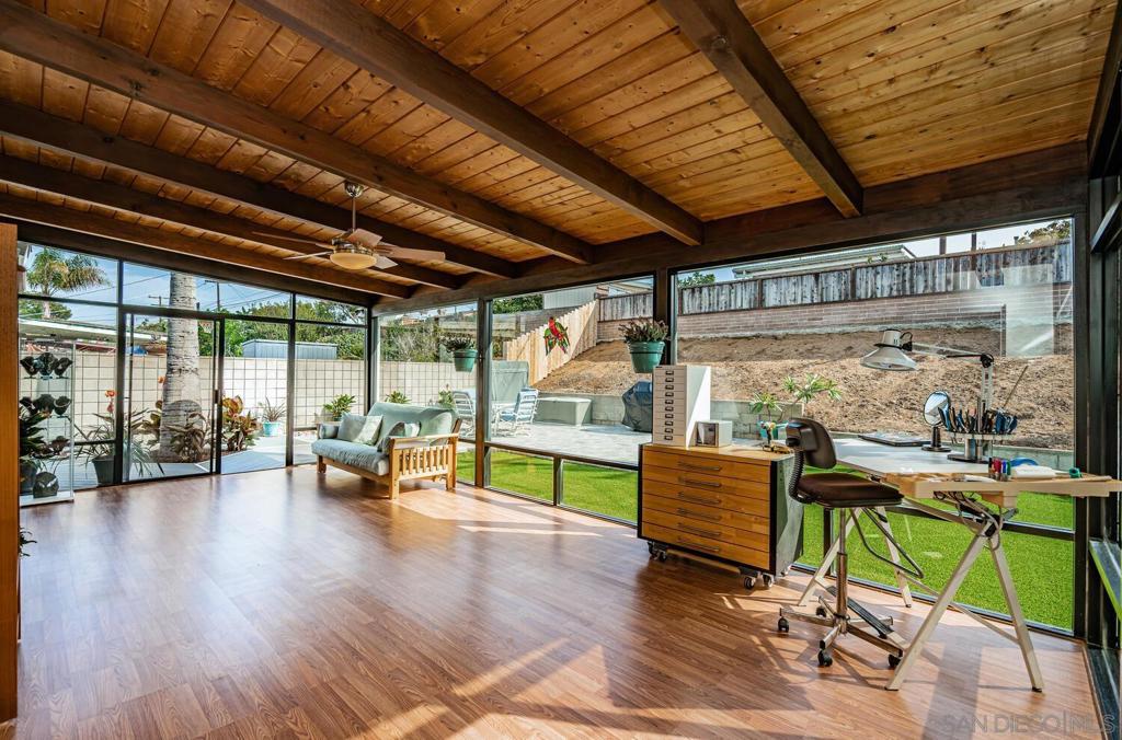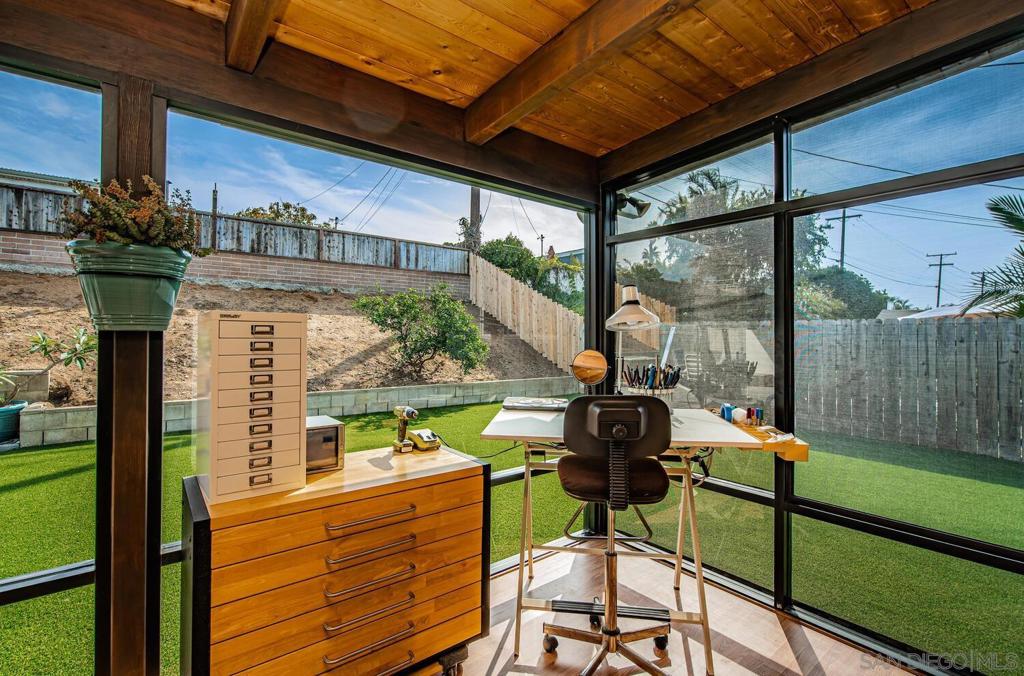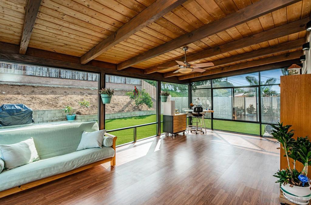 WELCOME HOME! This BEAUTIFUL, move in ready home has been thoughtfully upgraded in all the right places starting with the newly inspired, low maintenance front yard. Entering this home you're greeted with tons of natural light and the open floor plan. The spacious combination living/dining room area enjoys a marble and concrete, gas fireplace surrounded by large windows on both sides. Off to the left, the upgraded kitchen has vinyl plank flooring, deep sinks with Kohler faucets, Corian countertops, custom lighting and countertop insets for mixers and blenders. See supplement for more. WELCOME HOME! This BEAUTIFUL, move in ready home has been thoughtfully upgraded in all the right places starting with the newly inspired, low maintenance front yard. Entering this home you're greeted with tons of natural light and the open floor plan. The spacious combination living/dining room area enjoys a marble and concrete, gas fireplace surrounded by large windows on both sides. Off to the left, the upgraded kitchen has vinyl plank flooring, deep sinks with Kohler faucets, Corian countertops, custom lighting and countertop insets for mixers and blenders. Heading down the hallway, you'll find a bedroom on the left that includes a murphy bed, mirrored closet doors and a sliding door to the enclosed patio. The second bedroom has a ceiling fan, mirrored closet doors and a built-in wall safe. The primary bedroom has a ceiling fan and fully remodeled bathroom with ceramic tile flooring and shower enclosure. Accessed from the living room and one of the bedrooms, is a fabulous 25x14 enclosed sunroom. This 350square foot room includes new vinyl flooring, vaulted wood beam ceilings, a ceiling fan, new lighting and tinted windows. This finished room has endless possibilities for the new owners! Outside you will find the newly custom designed patio including a relaxing babbling brook feature along with artificial turf. This home also has solar installed under an assuable contract. The seller's monthly electric bill is approx $80.00 per month. Other upgrades and features include newer doors and dual pane windows throughout (excluding the sunroom), a custom front screen door with a retractable panel, a whole house fan, new insulation throughout the house, keyless entry, newer exterior stucco, new side gate and walkway and so much more. The prime location is close to shopping, post office, schools, restaurants, churches, freeways, movies theaters, world famous beaches, trolley stations and Mt. Soledad to name a few.