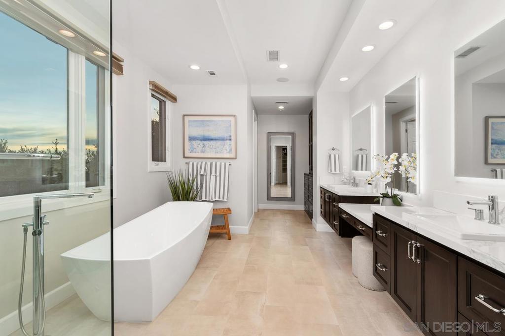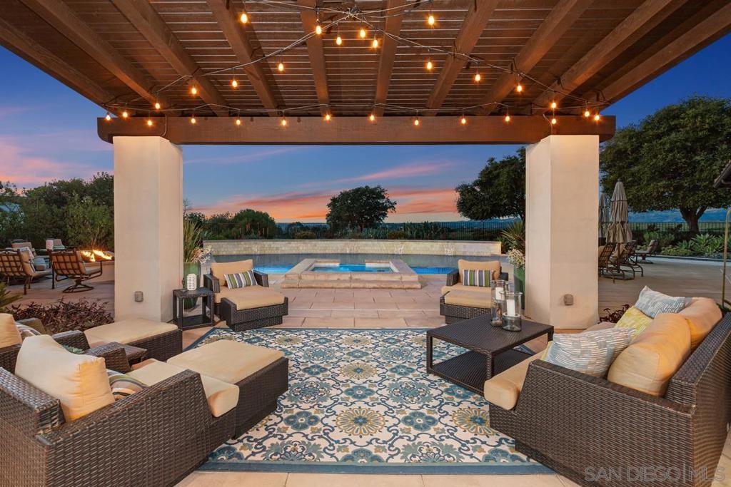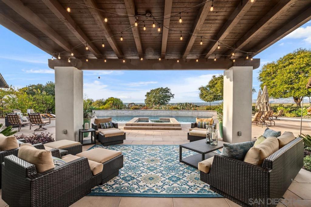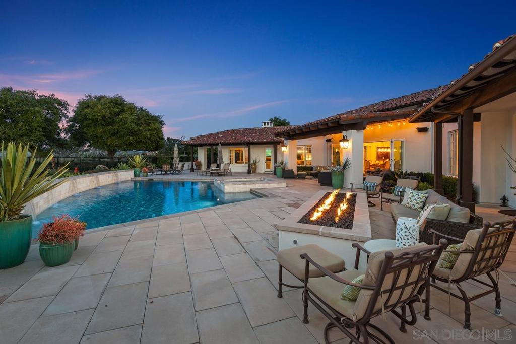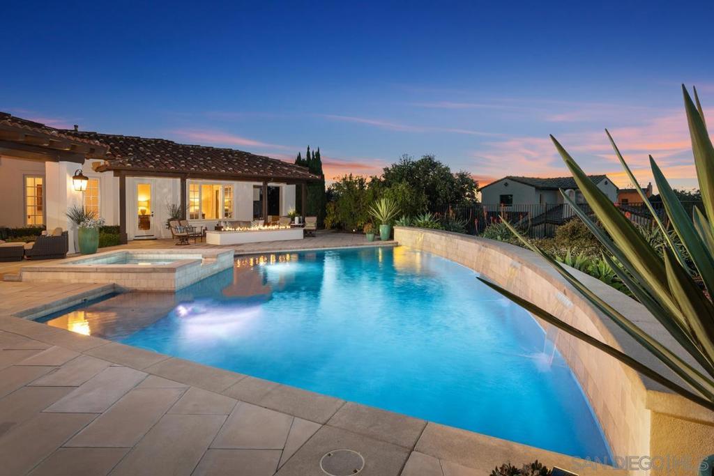 Don't miss this wonderful opportunity to own this beautiful single story 5 ensuite bedroom home, with private office on one of the best lots in Santaluz! Panoramic views of mountains, golf course and gorgeous sunsets. Walking distance to the village green, gym, tennis and pickleball courts, spa, clubhouses and restaurants in this sought after private gated community. This home has been newly remodeled inside and out to allow the ease of indoor/outdoor California living at it's best, with temperature controlled wine wall, pool, spa, fruit trees, raised vegetable beds, barbecue area, bocce ball, separate family and living rooms, located on a on a cul-de-sac with only 8 homes. During remodel, living room extended to add approximately 300 square feet bringing the square footage to approximately 5550 square feet.